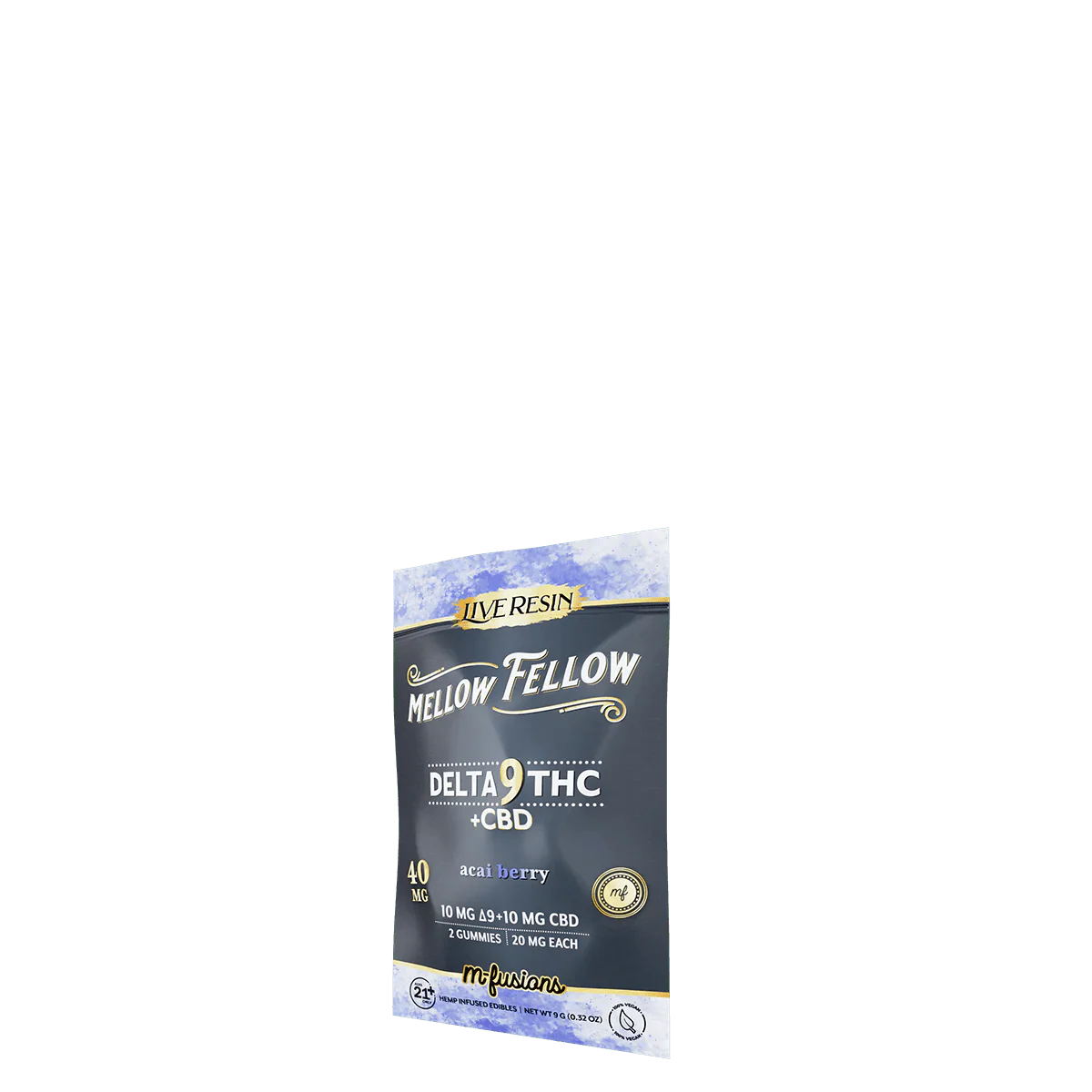 Mellow Fellow Delta-9 THC + CBD live resin gummies acai berry packaging